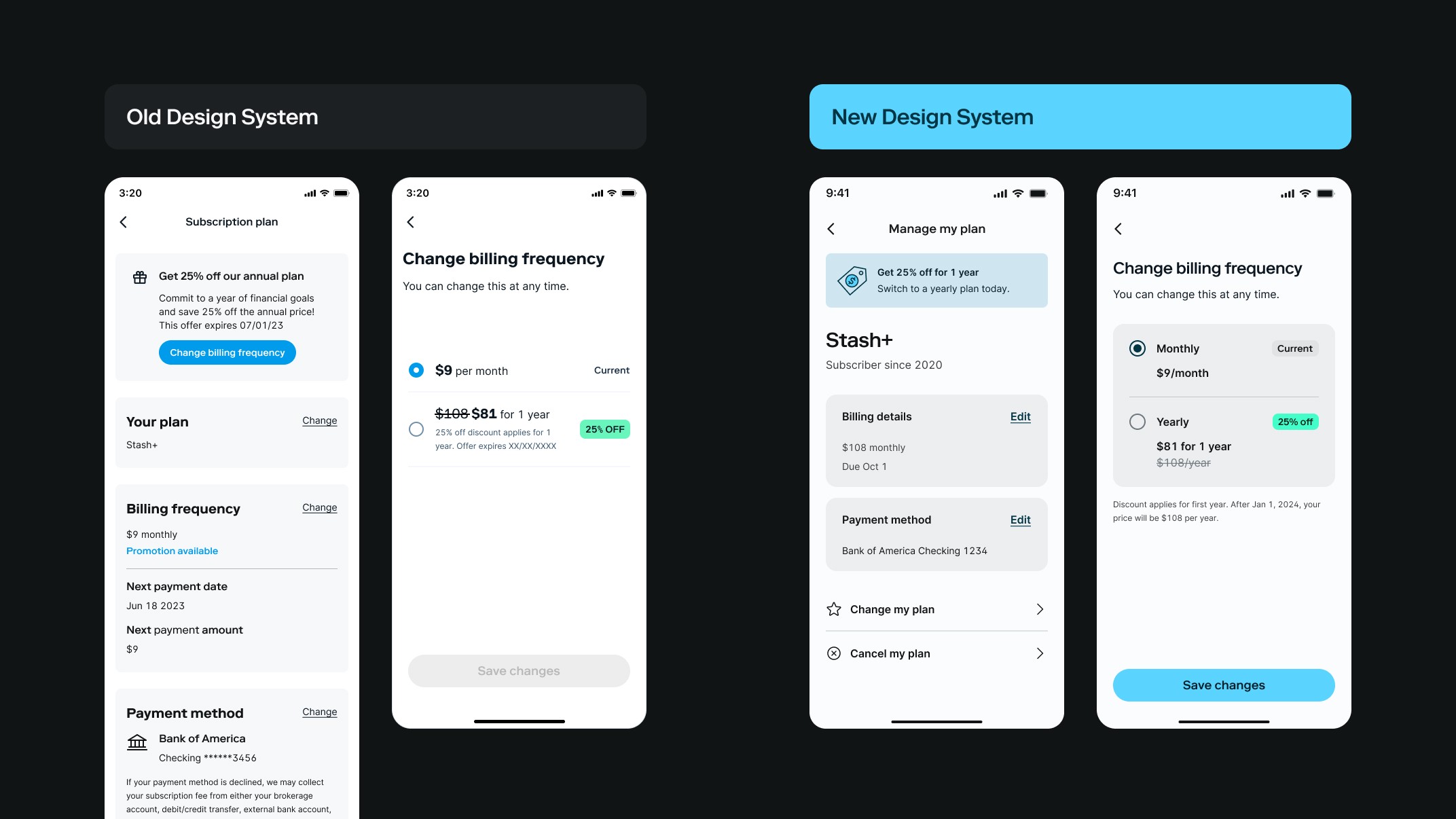 Here are a few screens from our first pilot program where we helped the Universal Features team ship the annual subscriptions experience. I personally paired with the lead designer for this experience to align on the components needed, and assisted with any question regarding implementation.