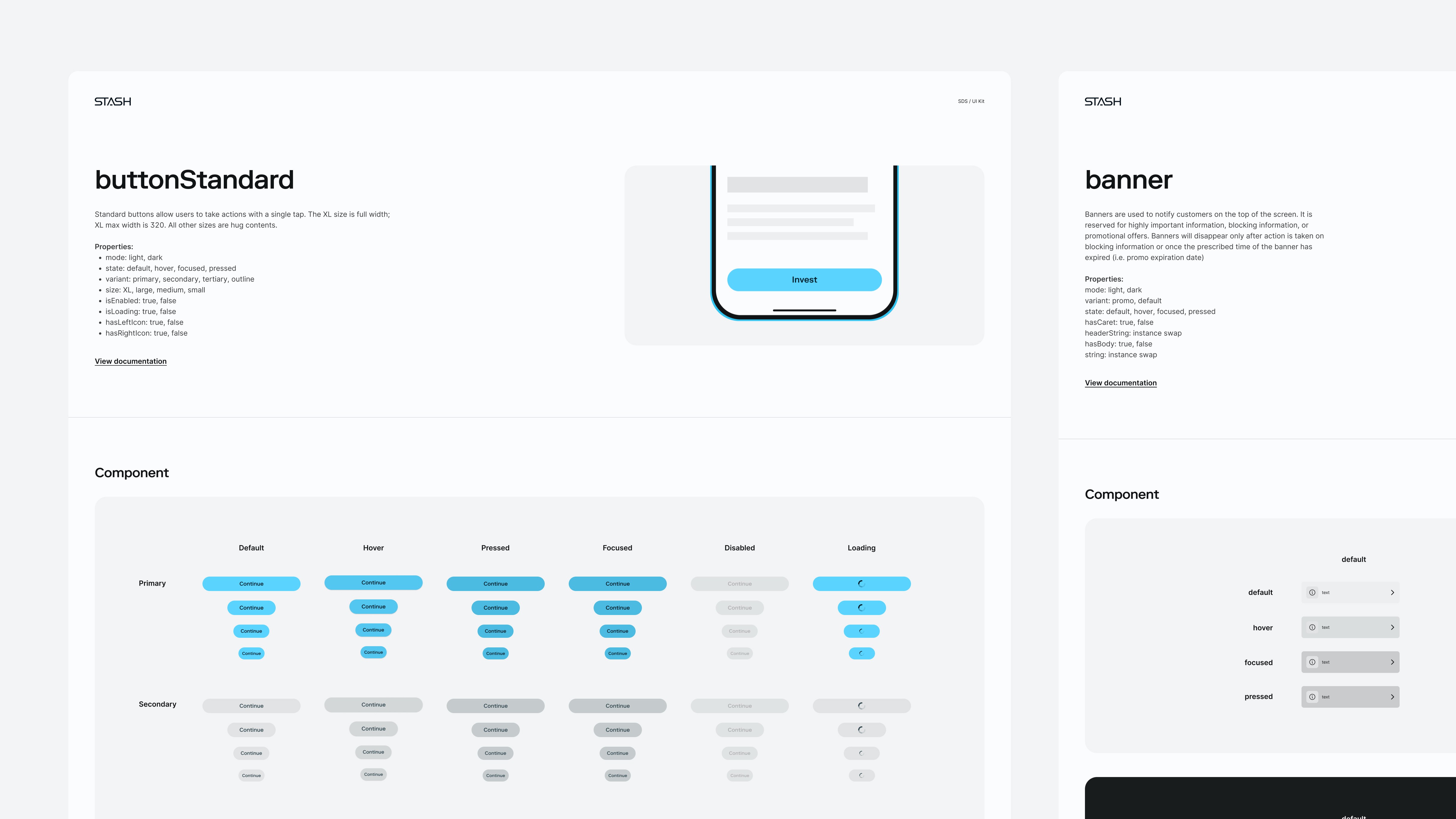 To address feedback from the Pilot program my PM and I currently working creating a comprehensive documentation site for Stash's Design System. This site provided a central location for storing and sharing information about the design system, from design principles to usage guidelines for components. We're hypothesizing that this site will add clarity on how to implement our components and ultimately increase design system adoption.